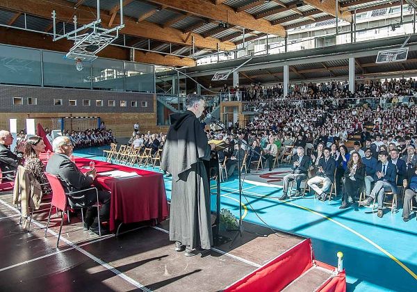 La jornada dio comienzo a las 12:00 horas con la recepción oficial en el centro. Posteriormente, los asistentes se trasladaron al polideportivo, donde tuvo lugar la ceremonia principal, que reunió a alumnos, familias, profesorado – tanto en activo como jubilado -, antiguos directores y priores de la comunidad, así como representantes históricos de la Asociación de Padres.