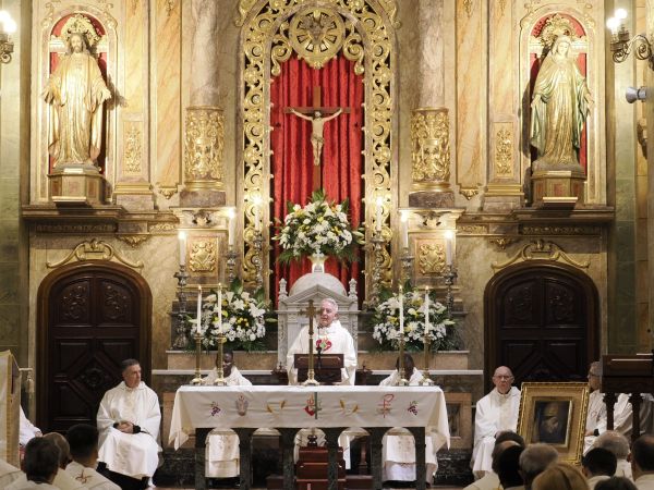 A las 18:00 horas, la Iglesia de San Agustín acogió la celebración de la eucaristía, que presidió el Vicario General de la Archidiócesis de Valladolid, D. Jesús Fernández Lubiano, y que estuvo animada por el coro de profesos, con un repertorio de canciones de distintos países.