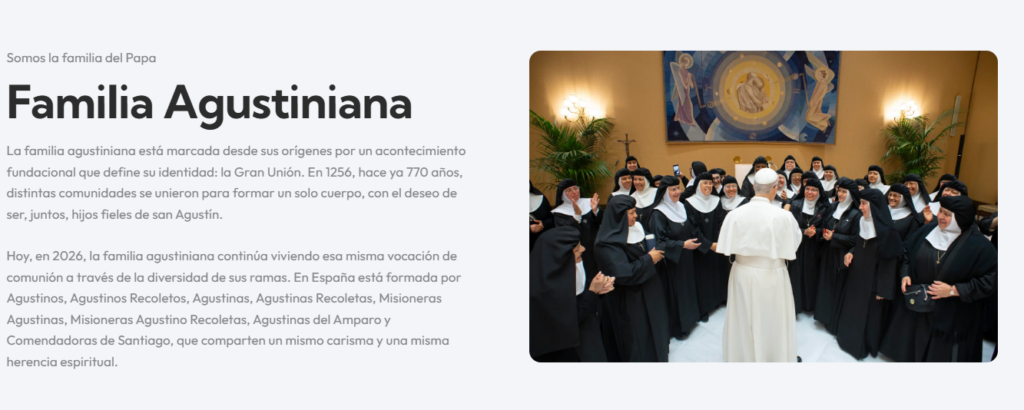 La web no es solo un proyecto comunicativo, sino una expresión concreta de lo que constituye la esencia más profunda del carisma agustiniano: la comunión. Diversas ramas de la familia – órdenes, congregaciones y realidades laicales – se presentan unidas en una misma voz para acompañar al Santo Padre en su visita a España.