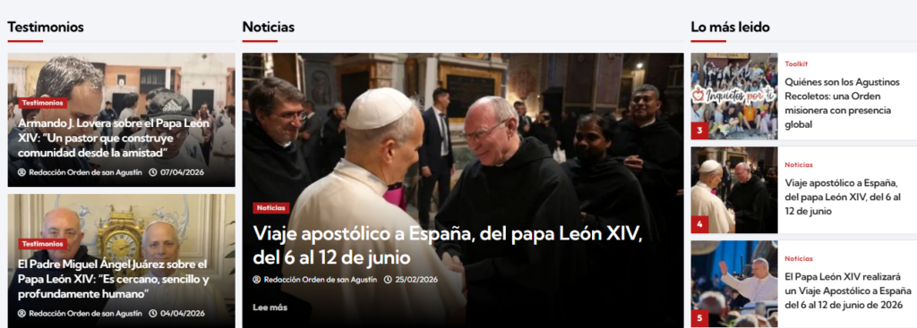 El portal agustinosconelpapa.es se configura como un espacio de encuentro, memoria y misión. En él se recogerá la actualidad de la visita papal, así como contenidos que reflejen la riqueza y la unidad de la familia agustiniana en España.