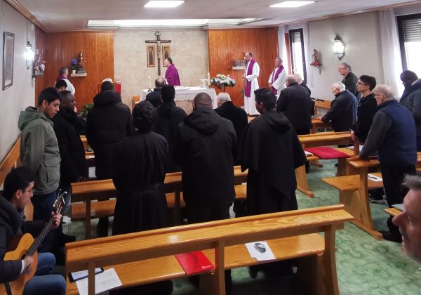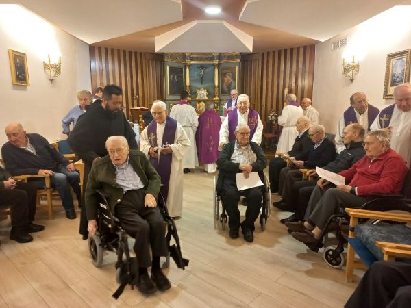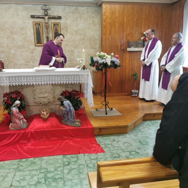 Siguiendo el esquema general programado por la Comisión de Vida Religiosa de la Provincia, tras la fraterna acogida de los presentes se dirigieron a la capilla de la comunidad para celebrar la Eucaristía. El P. Carlos Alonso, consejero provincial, presidió la Eucaristía y animó a todos a vivir con alegría la esperanzada felicidad de la venida de Jesús a nuestra vida. Al finalizar la Eucaristía, el P. Jesús Torres, prior de la comunidad, agradeció la participación de todos e invitó a continuar la celebración en la sala de comunidad.