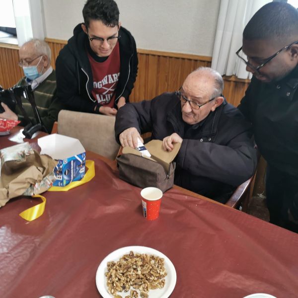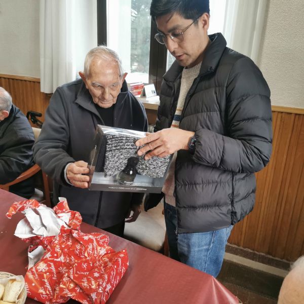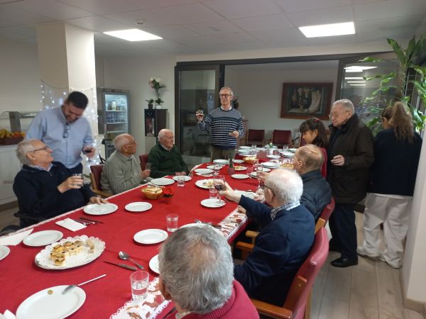 Antes de sentarse en la mesa, se repartieron regalos a cada uno de los mayores que residen en la RAE, quienes lo recibieron con gran ilusión. Tras la comida, ya en el comedor de la comunidad, se realizó un brindis con todos los visitantes, expresando el deseo común de vivir la paz, la alegría y la felicidad de la Navidad en todo momento.