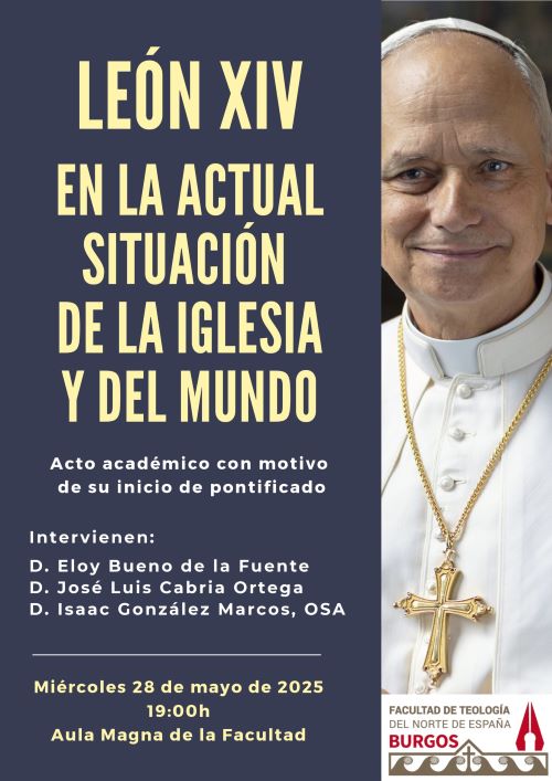 El pasado día 28 de mayo de 2025 la Facultad de Teología del Norte de España (Burgos) acogió una mesa redonda para presentar al nuevo Papa agustino, León XIV. En el acto, titulado León XIV en la actual situación de la Iglesia y del mundo, intervinieron los profesores Fernando Susaeta, quien dio la bienvenida y presentó al resto de profesores; José Luis Cabria, profesor de Eclesiología, que presentó el rol del Papa; Eloy Bueno de la Fuente, que expuso las líneas de pensamiento del nuevo Papa; e Isaac González Marcos, religioso agustino, que presentó el itinerario vital del papa y el estilo agustiniano.
