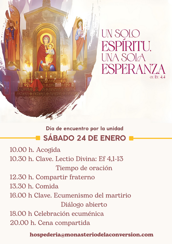 De manera especial, el sábado 24 de enero, abrimos las puertas de nuestro Monasterio e invitamos a toda persona que lo desee a vivir con nosotras una jornada de oración, reflexión y convivencia, en el espíritu del ecumenismo.