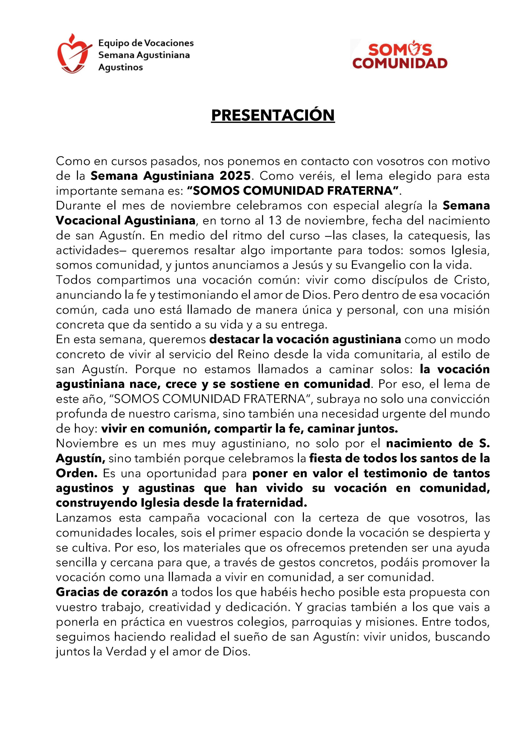 «Somos comunidad fraterna»