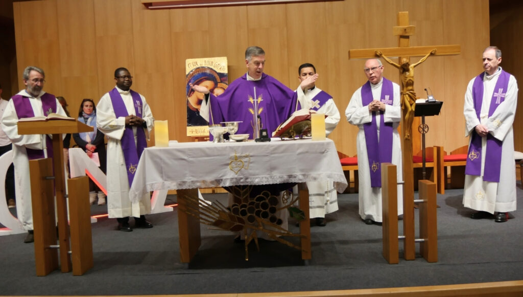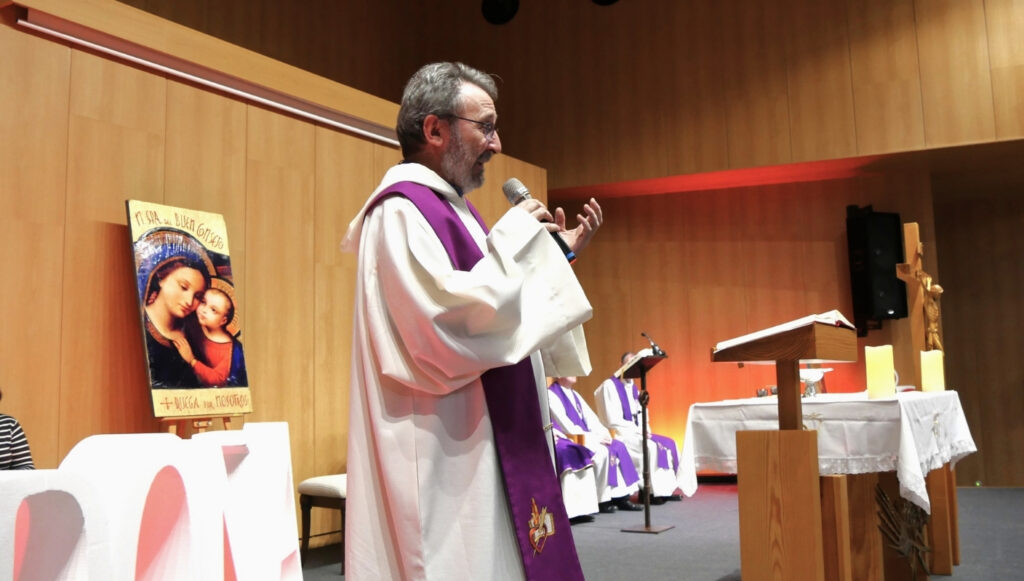 La Eucaristía del domingo la presidió el P. Joseph Farrell, que recordó en la homilía que al cielo no llegamos solos porque somos comunidad: «Comunidad que cuida, que sostiene, que acompaña, que asombra, que escucha, que comprende…. Comunidad que lleva al cielo”.
